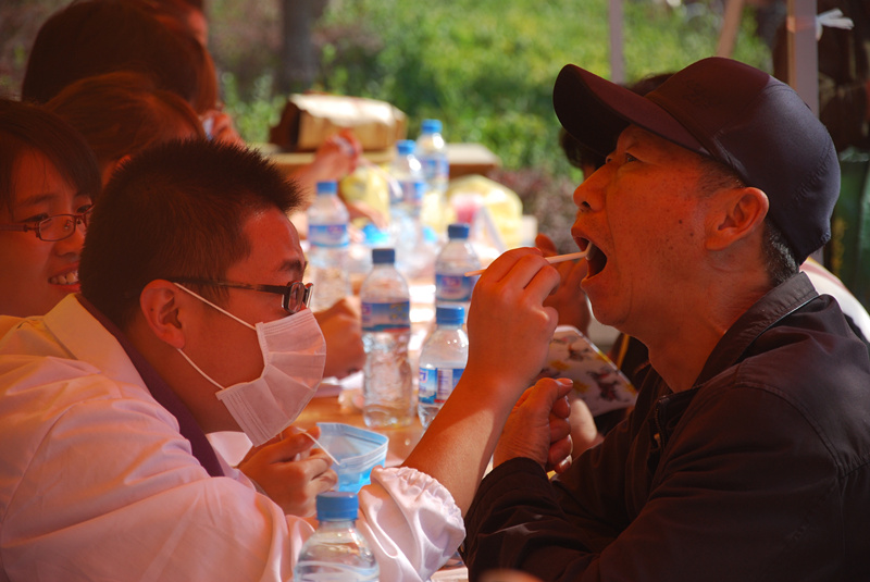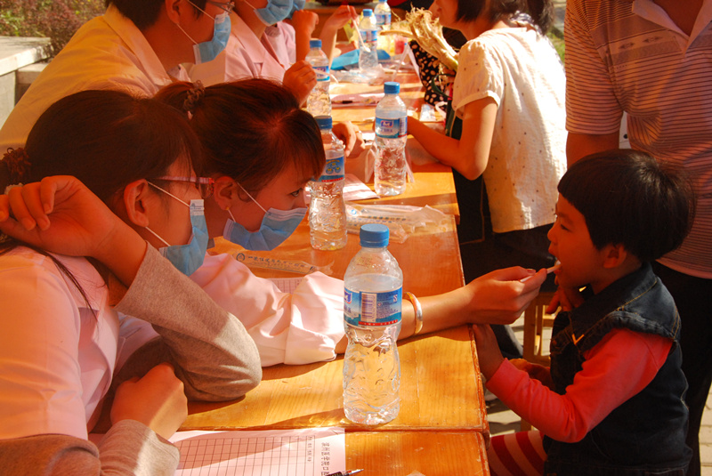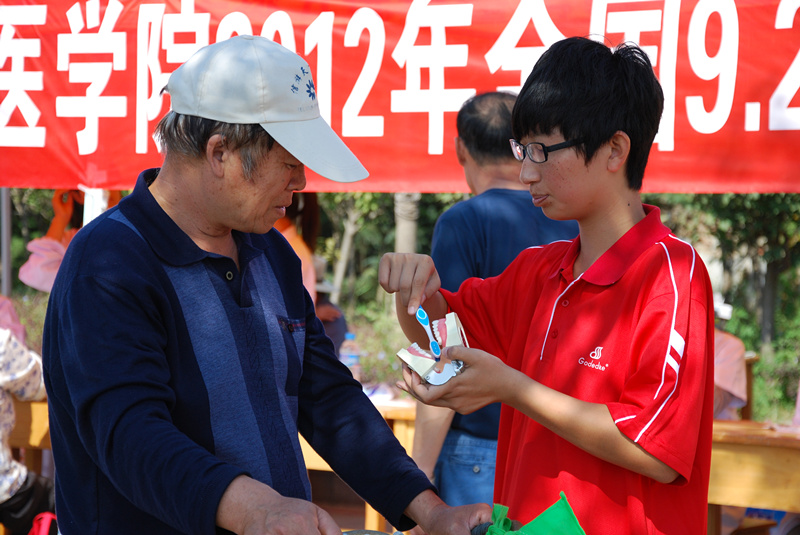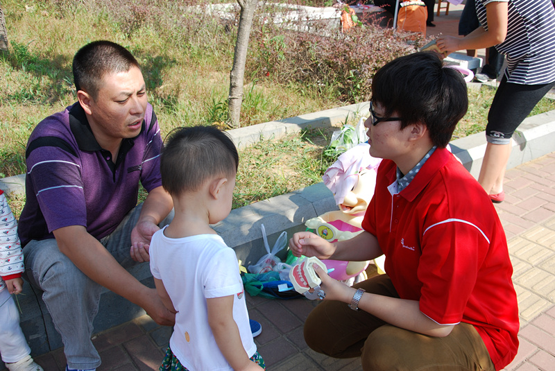 义诊活动正逢孙家滩大集,周边老年人和儿童较多,当天共为100余人进行了免费口腔常规检查、解说口腔疾病的发病原因和预防治疗措施、测血压,发放宣传问卷200余份。现场专门安排同学用牙齿模型解说正确的刷牙方法、牙线的使用方法、牙齿疼痛的原因等,发放宣传材料,借此向居民们宣传基本的口腔保健知识,引导居民们养成良好的口腔健康生活习惯。