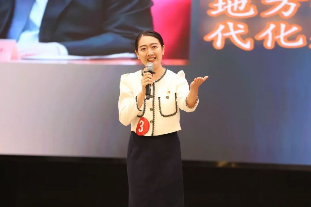 马艺菡老师在宣讲中,以“青春的模样”为核心,串联起跨越时空的青春对话—— 从革命战争年代里挺身而出、为民族独立抛洒热血的青年先烈,到新时代中响应号召、“向西而行”的西部志愿者与建设者,她用鲜活的故事与深刻的思考指出:“青春的模样从未改变,那份与祖国同频共振的担当,始终是青春最鲜明的底色。”最终,她紧扣大赛“青春为中国式现代化挺膺担当”的主题,将个人理想与国家发展紧密结合,落脚到高校教育工作者引导青年成长、服务社会的务实举措上,赢得了评委与观众的高度认可。