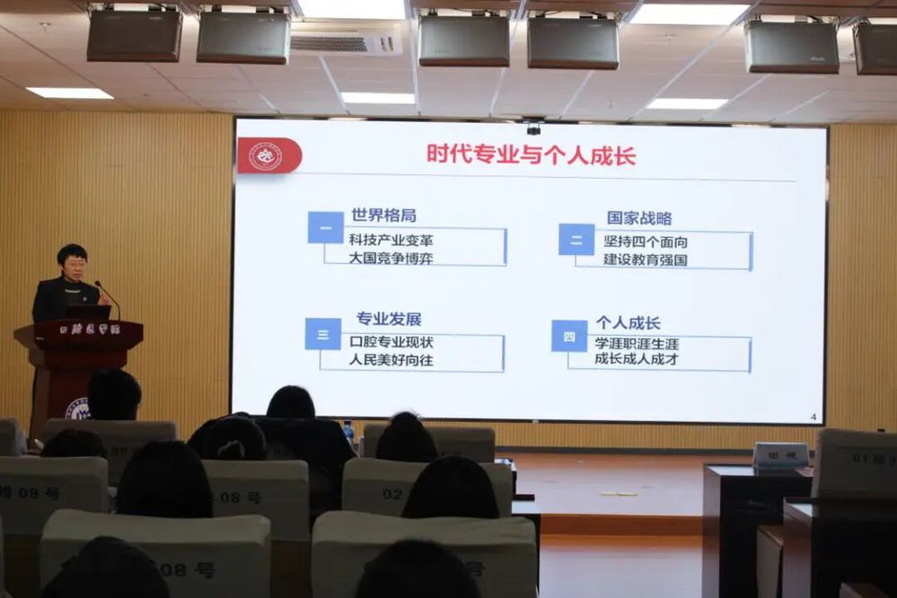 葛少华教授围绕“时代、专业与成长”与“科研选题与实施”两大主题,结合国际科技变革趋势、国家战略发展需求以及口腔医学领域现状,系统剖析了学科发展所面临的机遇与挑战。她指出,当前我国口腔医疗需求持续攀升,但高端医疗器械国产化率仍有待提升,数字化技术正为行业实现“弯道超车”提供重要契机。她鼓励同学们立足“四个面向”,推动医工、医理等多学科交叉融合,积极投身于口腔材料、设备研发等领域,探索创新成果转化的可行路径。