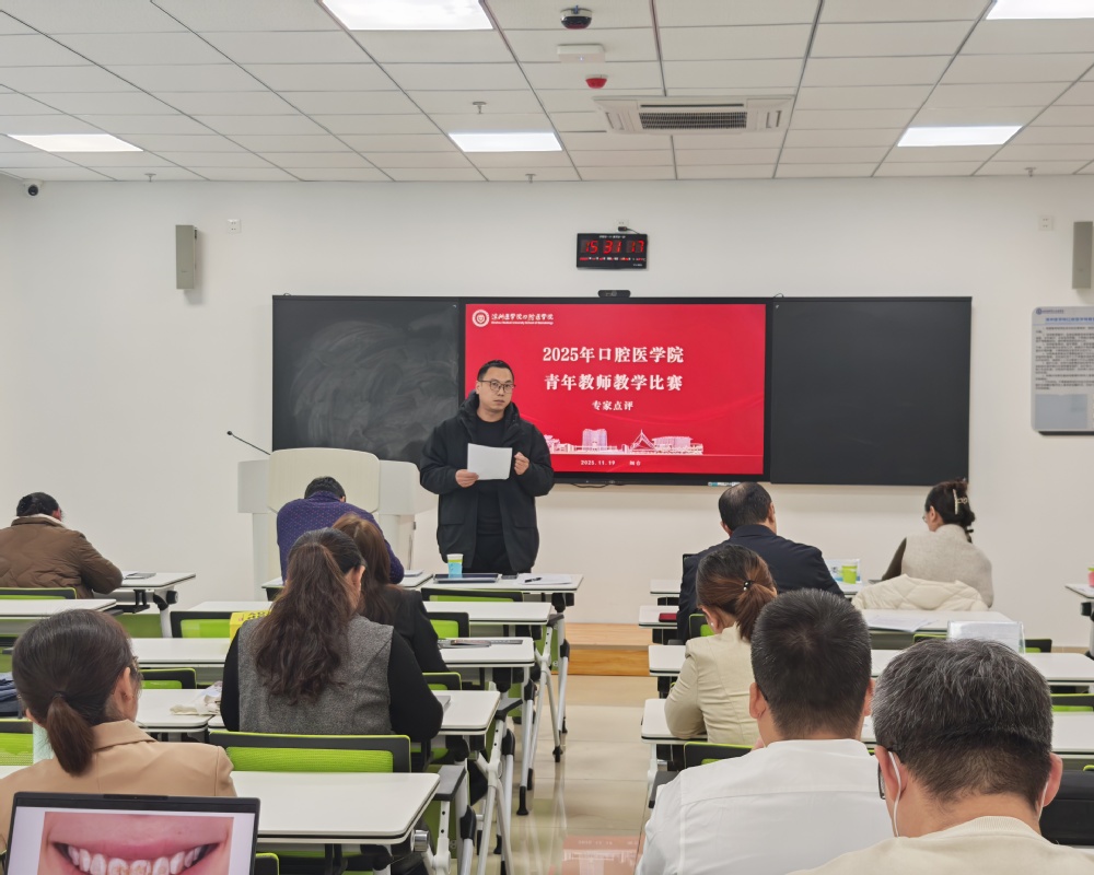 2025年11月19日,2025年口腔医学院青年教师教学比赛之授课比赛在烟台校区口腔医学中心顺利落下帷幕。口腔医学院副院长王毅主持本次比赛,院长柳忠豪全程参与并点评,共有来自口腔正畸学、口腔颌面外科学、牙周病学等7个教研室的13名优秀青年教师晋级决赛同台竞技。