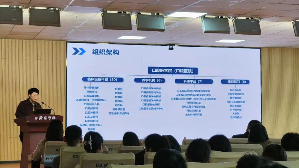 线下环节,多位导师依次登台,涵盖口腔医学众多核心方向:柳忠豪院长团队依托学科平台开展多元化探索;陈正岗副院长团队深耕口腔恶性肿瘤的分子机制;李尊岭教授团队分享肿瘤免疫治疗与人才培养经验;侯照远、胡京汇、任飞龙、张杰、李丹、顾中一、马翔、宋健、姚丽萍、张华菁、魏凌飞、杨春燕、胡京汇等老师,分别就基因调控、智能材料、组织修复、发育与再生、唾液腺损伤、牙周疾病、AI应用、骨再生技术、口腔微生物与免疫等课题展开介绍,详细阐述了课题背景、资源支持及招募期待。