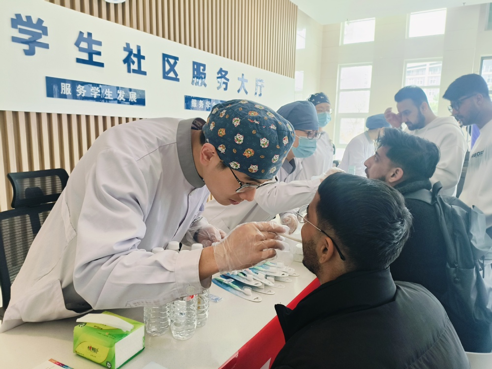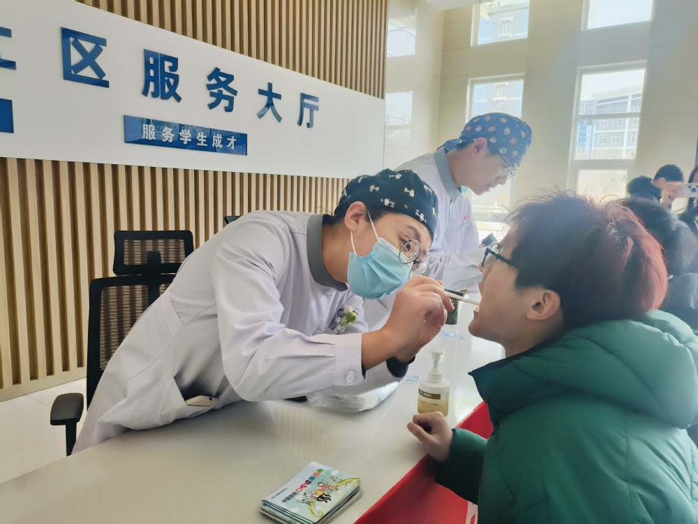 烟台市口腔医院专家团队现场坐诊,为师生提供免费口腔检查,并结合个体情况给予专业诊疗建议与健康指导。针对校内留学生群体,活动特别提供中英文双语咨询服务,有效打破语言壁垒,让每一位同学都能享受到细致、贴心的口腔健康服务。