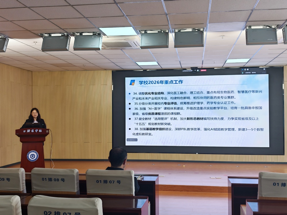 会上,王毅副院长围绕专业建设、课程建设、教材建设、教研教改、考试改革、产业学院、实践育人、教师教学发展支持和基层教学组织建设九大维度,对2026年教学重点工作进行了系统部署,明确了年度核心指标。